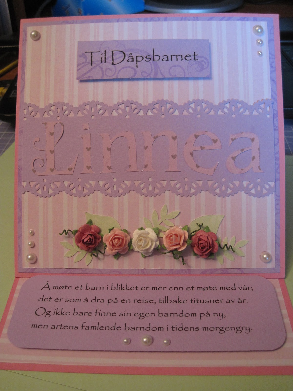 Så koselig dåpkort! Vakkert dekorert og en nydelig tekst -Så flott det ble med navnet i borden;)Go klem i fra mæ, Tove